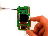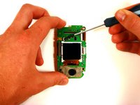 Using the head of the flathead screwdriver, pry the silver plastic casing of the LCD from the video logic board.