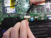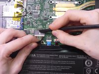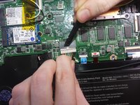 To disconnect the wire from the mother board, gently press down with the flat end of Spudger and pull on the wire.