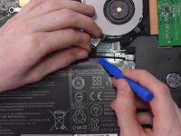 Remove the tape holding the speaker wire to the battery on both sides using a small opening tool.
