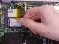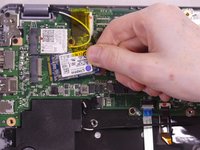 Remove the SSD card from the motherboard by gently pulling up on the side where the screw originally was and out in the same direction.