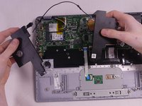 Remove the tape holding the speaker wire to the battery on both sides using a small opening tool.