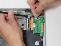 Pull the charging port out by pulling up on the cable that connects the port to the motherboard.