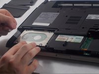 In this guide users will be walked through the process of removing both of the hard drives located in the Toshiba Dynabook AX 53D. This includes removing the drive cover panels, pulling out the drive, and removing the drive from its metal retaining plate.