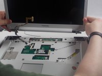 In this guide users will replace the touchpad in the Toshiba Dynabook AX 53D. This process includes removing the top panel screws under the laptop, removing the media bezel, unscrewing the keyboard, popping the top panel off, and disconnecting the touchpad.