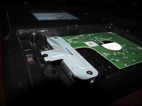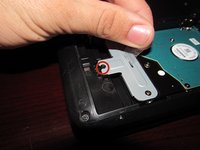 Remove the hard drive mounting bracket. Loosen the 2 highlighted screws to remove it from the bracket.