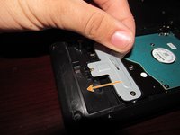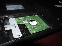 Remove the screw holding the hard drive in the computer. Slide the drive backwards to remove it from the laptop.