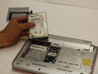 With the panel removed, slide the hard drive towards the top of the netbook with moderate force.