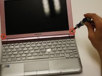 Use the bit driver with a Phillips #0 bit to remove the two 5 mm screws securing the screen bezel.