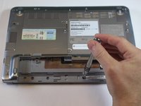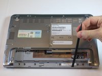 Turn it over and remove plastic cover on top of laptop with power button on it.