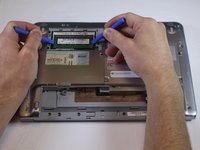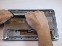 Using two plastic opening tools (or your fingers) pull two tabs holding RAM outwards.