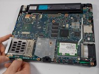 Once all tabs are pulled back the motherboard should easily be able to be removed from the bottom half of the laptop.
