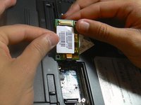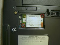 Use a Phillips #1 screwdriver to remove the two screws on opposite corners of the wireless card.