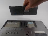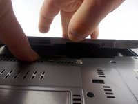 Flip the laptop over. Keep the front end facing away from you, so the battery appears at the top.