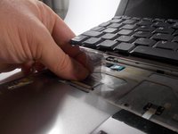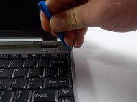 Remove the plastic casing above the keyboard with the plastic opening tool. Start at the edges of the plastic casing and move toward the middle.