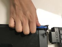 Remove the screw from the metal hinges in the top corners of the laptop as shown in the picture.