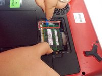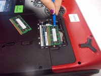 Use a Phillips #0 screwdriver to unscrew the single 8 mm screw and remove the RAM cover.