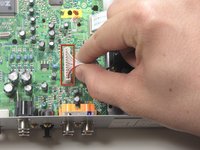 Remove the second of two ribbon cables connected to the motherboard by pulling vertically.