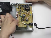 This guide gives instructions on how to remove the Right-Side Motherboard (Yellow) of the Toshiba SD-K740 DVD player, which controls the buttons and power function.