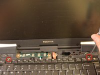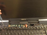 Using a set of case opening tools, pry open the left and right sides of the black plastic strip above the keyboard.