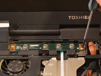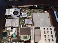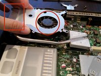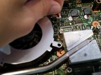 Unscrew the screw located on the left side of the optical drive near the heat sink cover in the middle of the laptop.