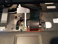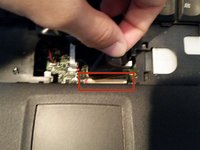 Pull upward on the small white ribbon cable to detach from circuit board.