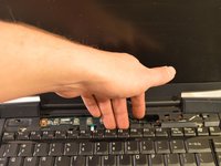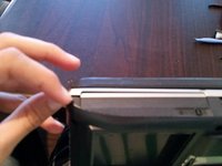 With one finger on the raised grip, slide the latch towards the front of the laptop.