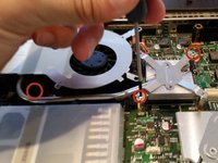 Unscrew the remaining screws on the heatsink and fan brackets.