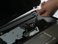 After removing the screws look to the right side of the laptop. Remove the white wire in the channel found there. To do this you only need to move the wire around the plastic pieces holding it down.