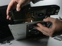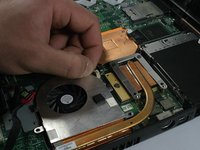 Next slowly lift up the fan from the back and slide it out. From here you can either clean the fans and heat sink with compressed air or replace the fan completely. Assembly is reverse of removal.