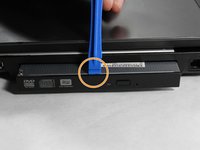 Turn the laptop back over (cover-side up) with the optical disk drive on the right side.