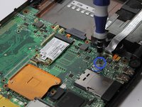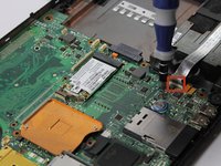 Unscrew the two 4.5 mm screws holding the keyboard on with the Phillips #1 screwdriver.