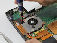 Remove the two 4.0mm phillips screws holding the fan in place.