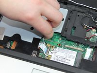 • Remove the cable attaching the LCD to the motherboard, on the left side of the laptop.