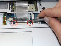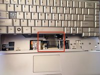 Locate the two 2.3mm Phillips #1 screws at the top of the keyboard that attaches the keyboard to the frame behind it.