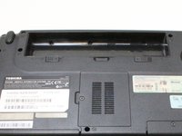 Turn computer over so that the battery compartment is facing up and is at the top.