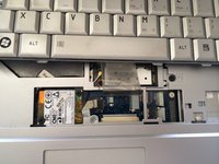 Find the ribbon cable that connects the keyboard to the laptop. Look for the black tabs on both sides of cable at the laptop end of the cable.