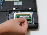 Pull the two tabs away from the RAM so that the RAM will be removable.
