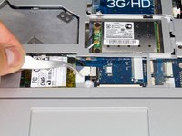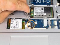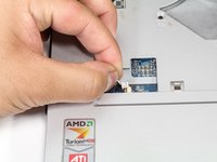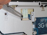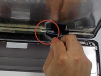 Detach tape that is over the screens connection to the laptop, and detach connection with tweezers by pulling back