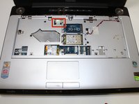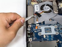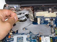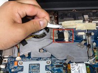 Locate the fan in the top left hand corner of the inside of the laptop.