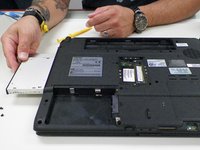 Push down metal rod until optical drive pops out from its container on the side of the device.