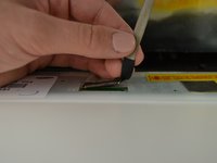 Peel back all four circular stickers that are located at each corner of the computer frame.