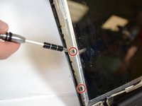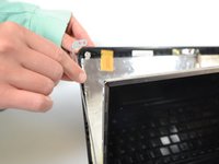 Unscrew the three black 4mm JIS screws on each side of the metal frame that is still attached to the side of the screen.