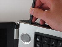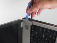 Pry off the top part of the laptop's case (above the keyboard) containing the speakers by using both the spudger and opening tool to push the case away from the computer.