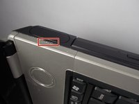 Locate the rectangular slot on the side of the laptop just above the disk drive.