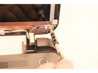 Use a Philips #1 screwdriver to remove the top left and right two 7 mm Phillips #1 screws by turning the screws counter clockwise.