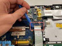 Use a non-metallic object to lift up the gray ZIF tab on trackpad connector.