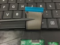 • Locate the keyboard ribbon cable, and the cable retainer keeping it attached to the motherboard.