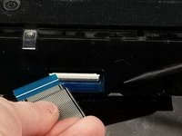 Using the spudger, lift up the white ZIF connector to unlatch the ribbon cable, and gently remove the cable.