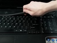 Starting at the right, pry up part of the plastic bar by using a spudger between the F12 and Insert key.