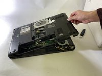 Pull the back panel of the laptop off, exposing the motherboard and other inside components.